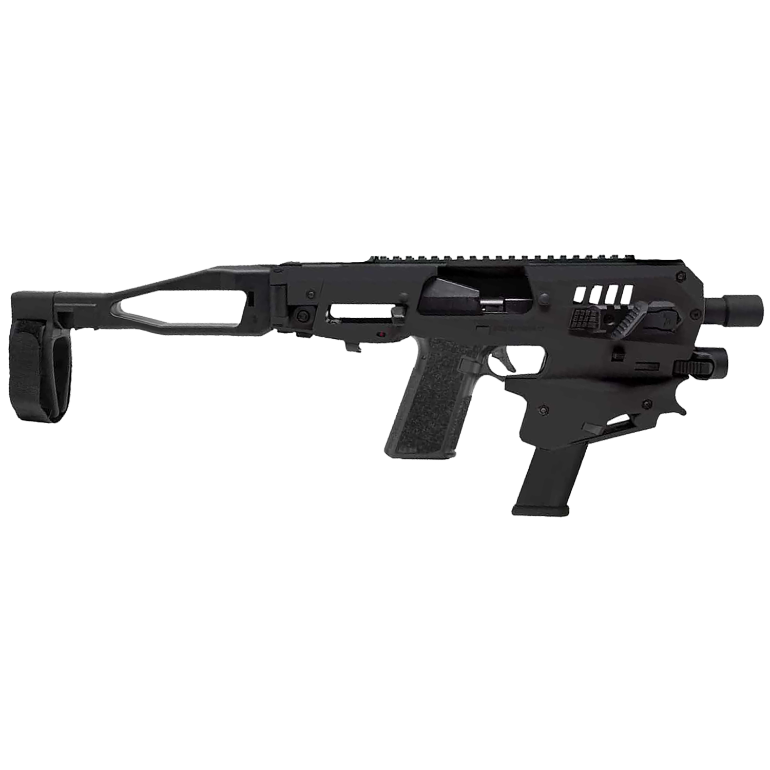 - Brazo de apoyo de culata plegable hacia la derecha para facilitar su ocultación y transporte, se bloquea en la posición plegada.