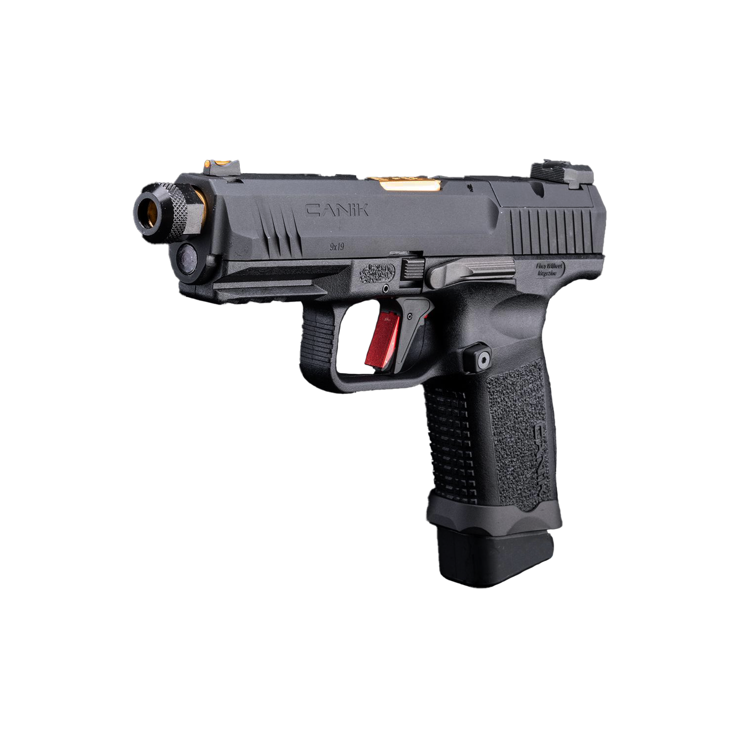 Canik x Salient Arms TP9 Elite Combat Airsoft Training Pistol Licensed by Cybergun (Color: Black/Gold)