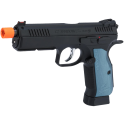 ¡El esperado proyecto de colaboración de Cybergun y Canik ya casi está aquí! La TP9 Elite Combat es una pistola compacta versátil con piezas de rendimiento diseñadas en colaboración con Salient Arms International, que incluyen un cañón de competición estriado y revestido de nitruro, protector de rosca, juego de miras y pozo de cargador. La pistola compacta tiene un armazón de polímero, se dispara con percutor y tiene una corredera preparada para ópticas que acepta las miras réflex más populares del mercado. Las palancas de tope de corredera en ambos lados permiten un uso ambidiestro. Este equivalente de Airsoft imita el diseño y se siente tan resistente como su contraparte de la vida real, con un cañón exterior SAI de estilo CNC, corredera preparada para ópticas y pozo de cargador y miras mecanizados por CNC.