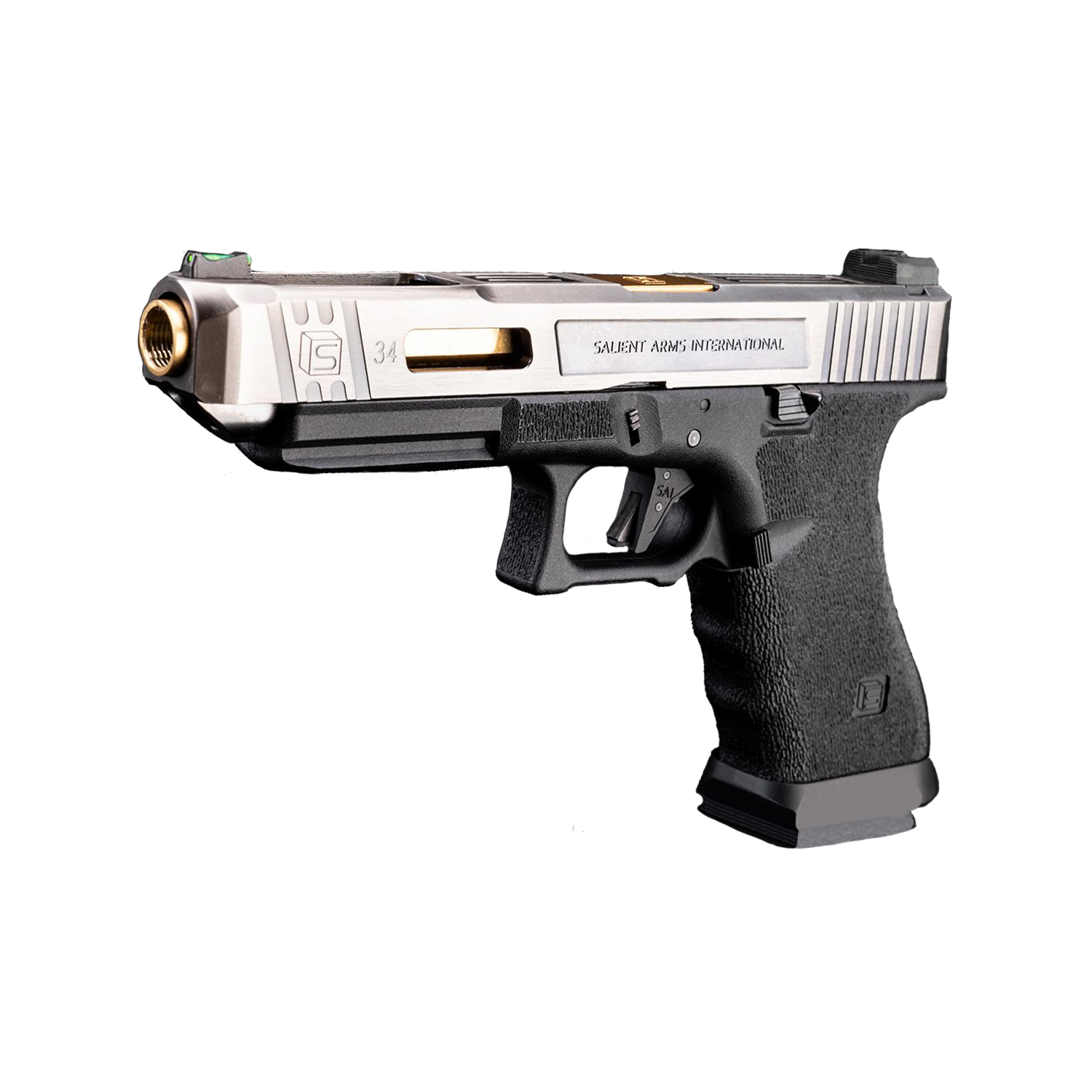 EMG / Salient Arms International Custom Airsoft Training Weapon w/ Tier One Competition Slide Kit (Color: Silver & Gold)