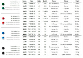 - Munición: Pintura, Goma con aleación de Metal, Metal, Pimienta, Rompe Vidrio.